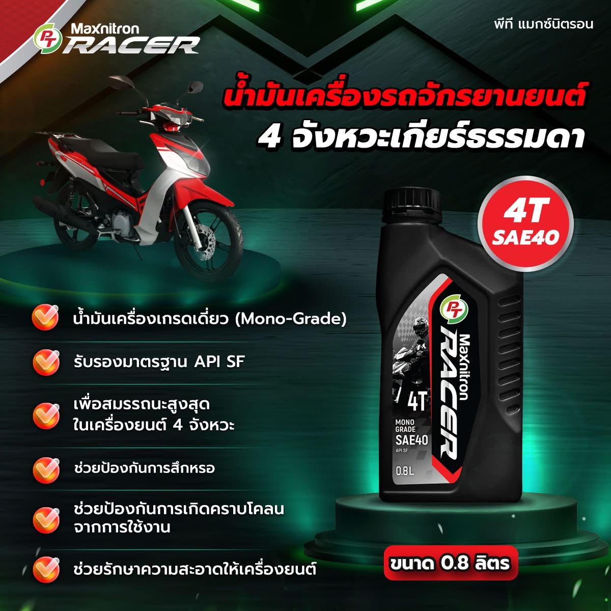 • น้ำมันเครื่องเกรดเดี่ยว (Mono-Grade) ที่ออกแบบมาเพื่อสมรรถนะสูงสุดในเครื่องยนต์ 4 จังหวะ